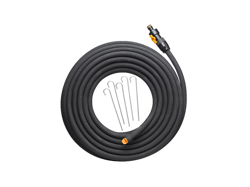 Met de bijgeleverde grondankers kan je de slang in de grond bevestigen. Je kan ervoor kiezen om de slang op de grond te leggen of in de grond in te graven. Is de slang te lang voor jouw tuinbed, dan kan je de slang ook eenvoudig op maat afknippen met een schaar.