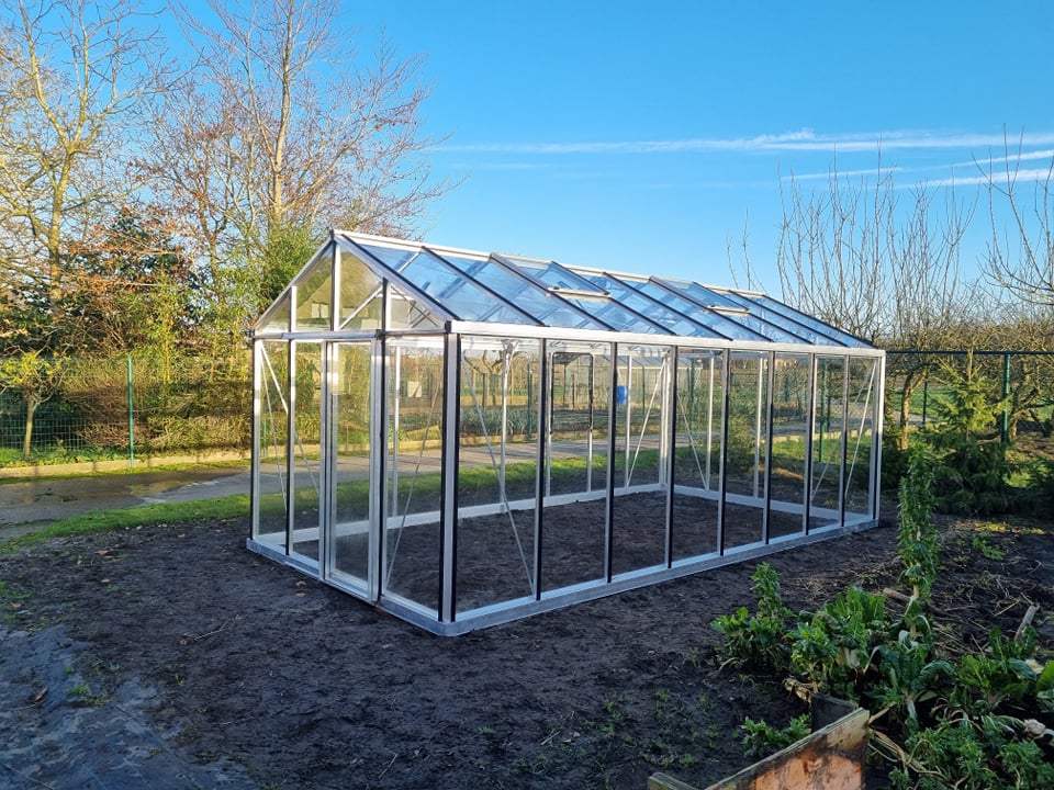 De unieke goothoogte van maar liefst 201 cm zorgt ervoor dat je overal rechtop kan staan in deze ruime Helios Master. De nokhoogte is 260, 274 of 278 cm, afhankelijk van de grootte van de kas. Alle serres van Janssens worden geleverd met 4 mm veiligheidsglas, een gootprofiel met waterafvoer (40 mm) tot aan het maaiveld en een geïntegreerd stevig funderingsprofiel dat verankerd kan worden. Het glas wordt standaard vastgezet met stormdichtingen in rubber. De Helios Master is voorzien van minstens één schuifdeur, twee dakramen en van één louvre-zijraam met lamellen.