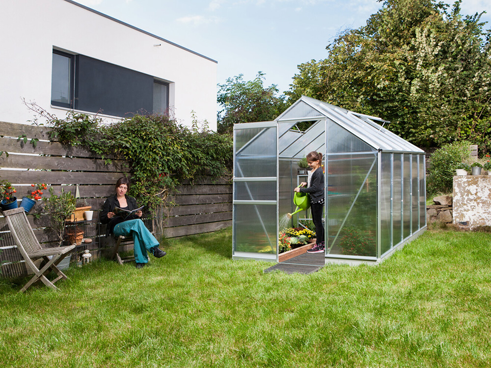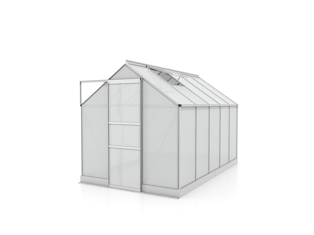 Het frame bestaat uit duurzaam geanodiseerd aluminium zodat de tuinkas er jarenlang als nieuw uitziet. Standaard wordt de tuinkas geleverd met 4 mm polycarbonaatplaten. Deze dubbelwandige platen zijn licht van gewicht, bijna onbreekbaar en bieden een uitstekende isolatie! In optie kan je kiezen voor 6 mm polycarbonaat.
