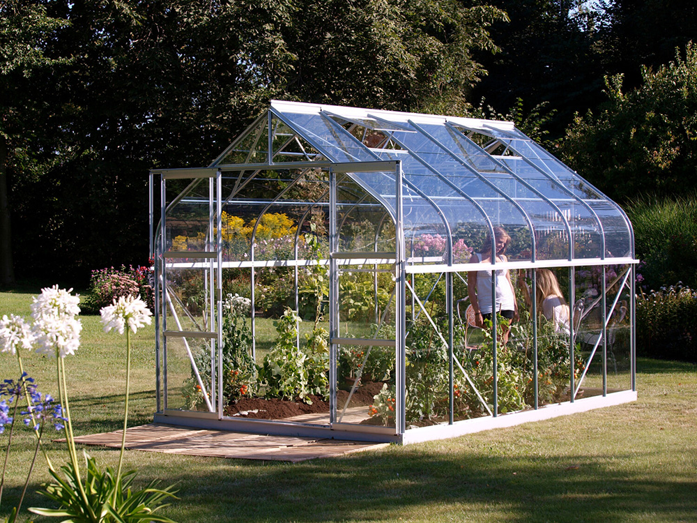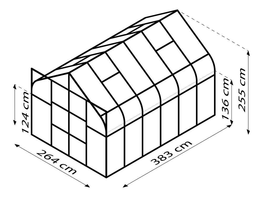 De Vitavia tuinkas Saturn valt op door zijn elegante, gebogen dakranden. Deze serre straalt niet alleen stijl uit, maar biedt ook volop ruimte voor het kweken van planten. Dankzij de dubbele schuifdeur is de kas eenvoudig toegankelijk.