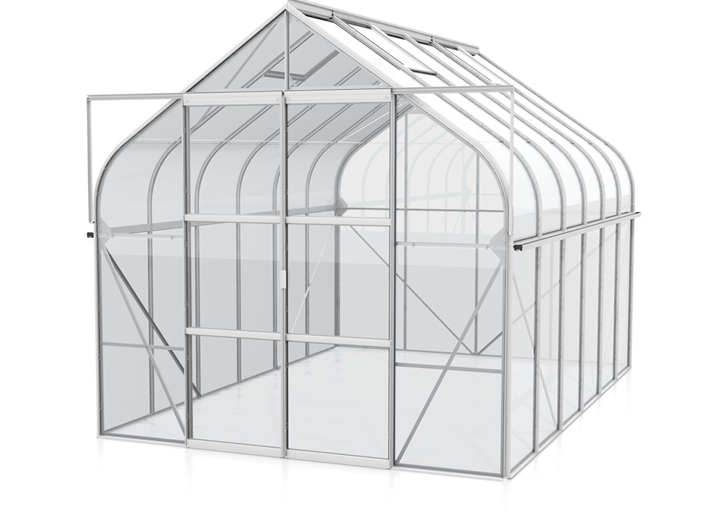 De constructie is vervaardigd uit duurzaam geanodiseerd aluminium en voorzien van 3 mm veiligheidsglas, wat zorgt voor stabiliteit en maximale lichtinval. De gebogen randen zijn afgewerkt met UV-bestendige, transparante polycarbonaatplaten. Handige extra's zijn de geïntegreerde goten en 1 tot 4 dakramen (afhankelijk van het formaat) die zorgen voor een uitstekende ventilatie.