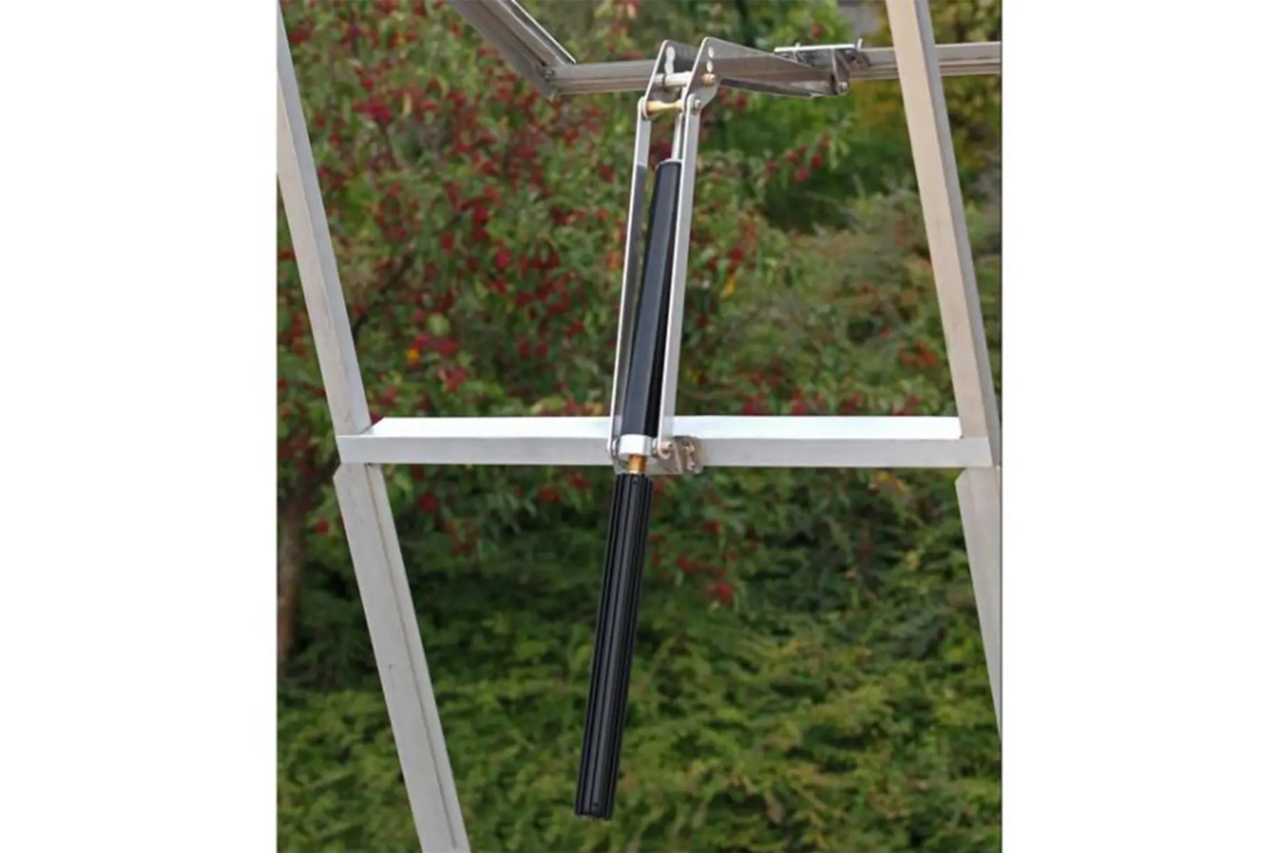 De Gigavent raamopener is de allersterkste raamopener geschikt voor het openen en sluiten van grote en zware ramen tot 60 kg. Met deze raamopener openen en sluiten de ramen vanzelf volgens de temperatuur in de kas / serre en dat helemaal autonoom zonder elektriciteit of batterijen. De temperatuur blijft hierdoor zoveel mogelijk constant en de kans op oververhitting is nagenoeg uitgesloten.