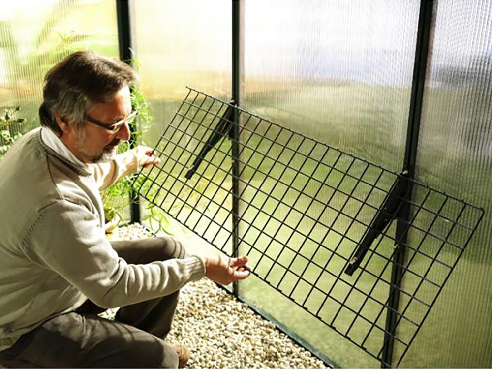 De opklaptafel Bruno is ideaal voor elke kas of serre: bij plaatsgebrek klap je de tafel eenvoudig omhoog. In het voorjaar gebruik je de tafel om jonge planten te kweken. Heb je later meer ruimte nodig? Klap het rek snel weer in.
