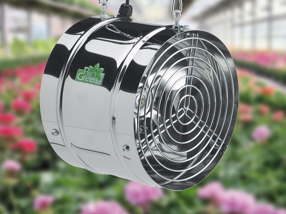 De ventilator is voorzien van een roestvrijstalen behuizing en is bestand tegen opspattend water. Geluidloze ventilator om de ventilatie in uw kas te stimuleren.