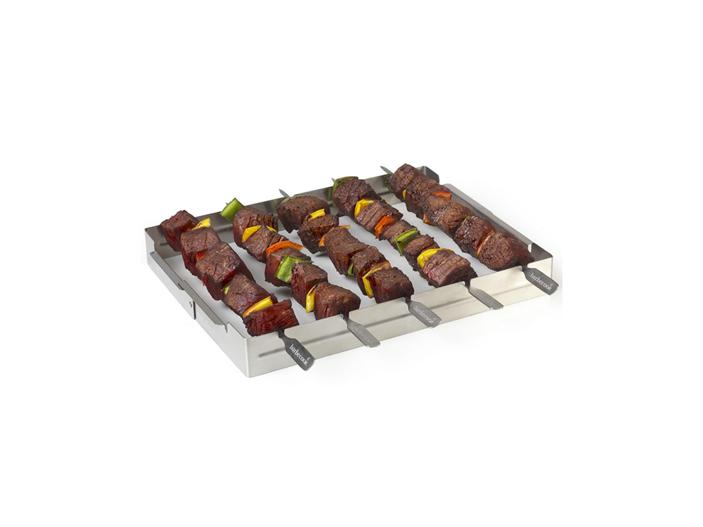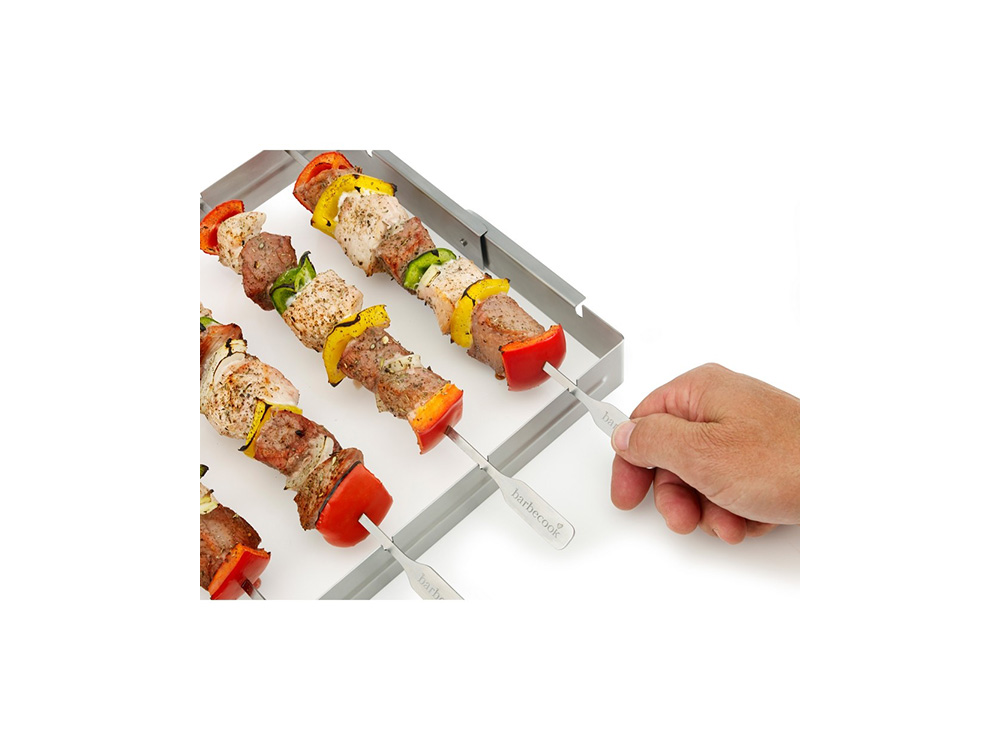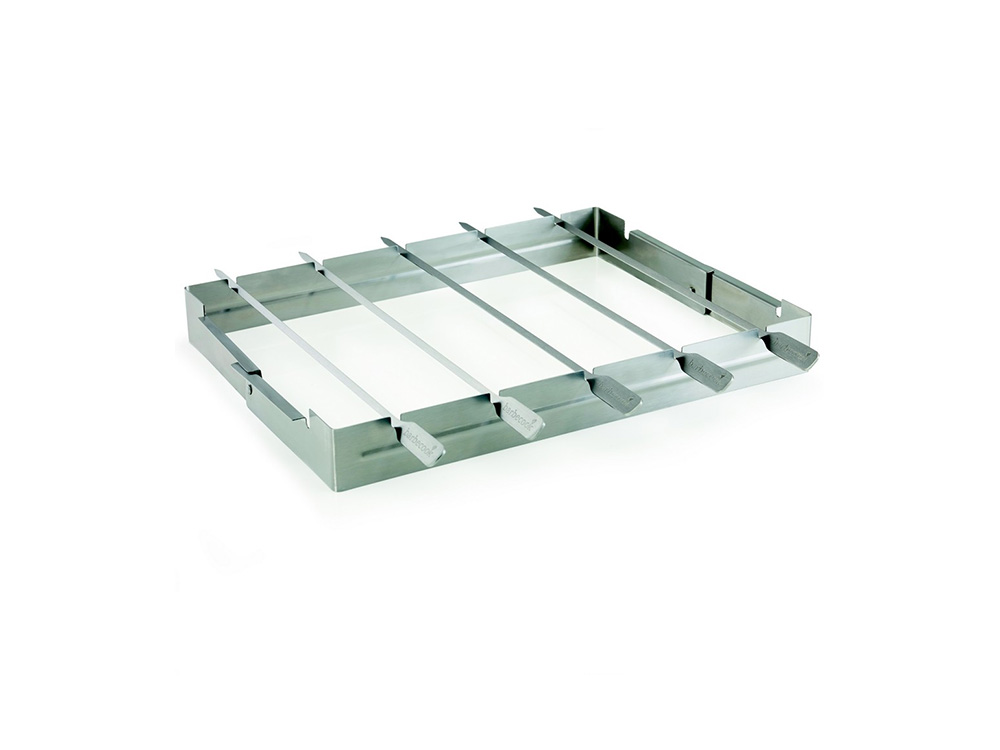 Een geniale uitvinding van Barbecook! Dit rek is het beste hulpmiddel om 5 brochettes klaar te maken op de houtskool- of gasbarbecue. Met de brochettehouders gaat het draaien van de vlees- en visbrochettes vlot en snel.