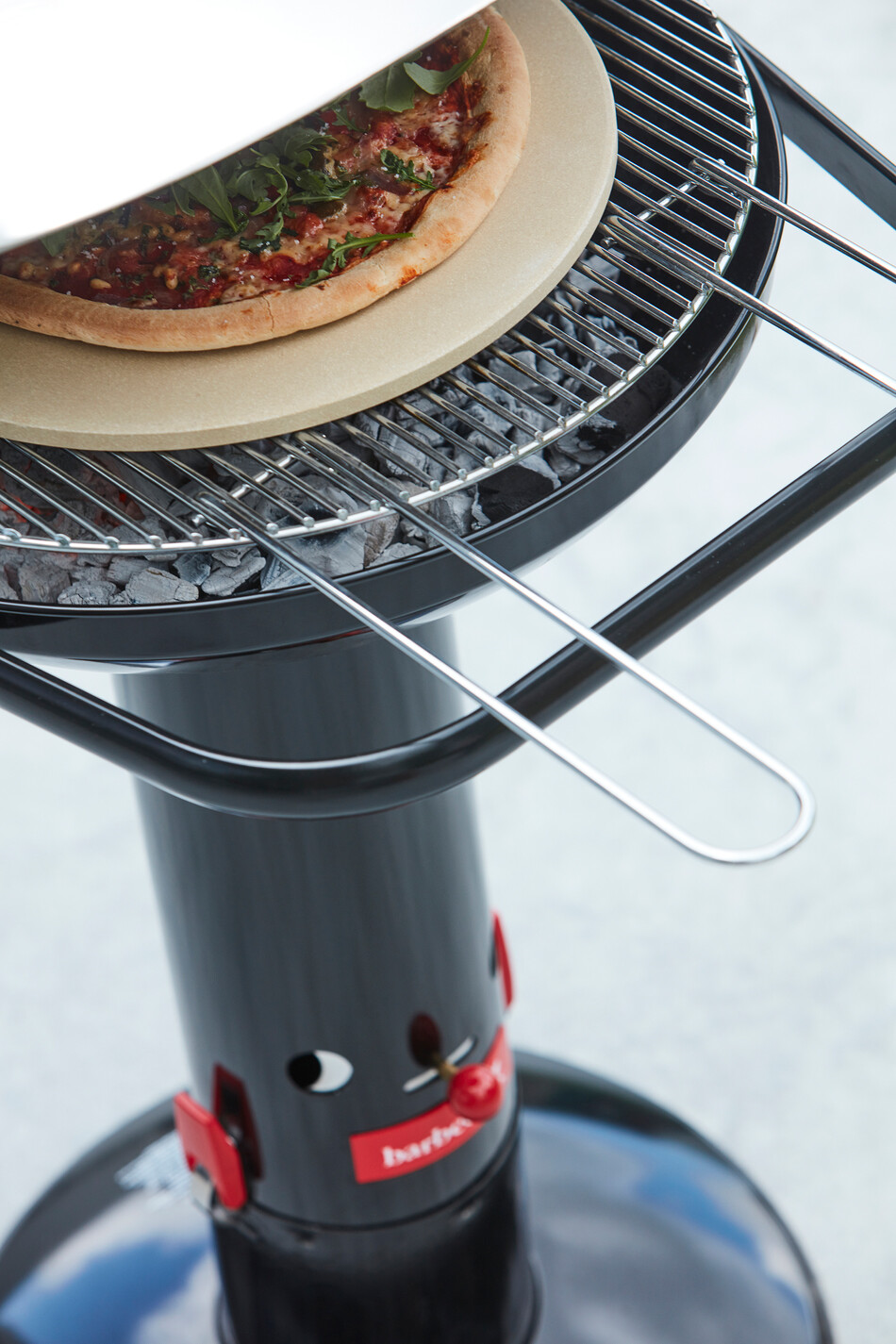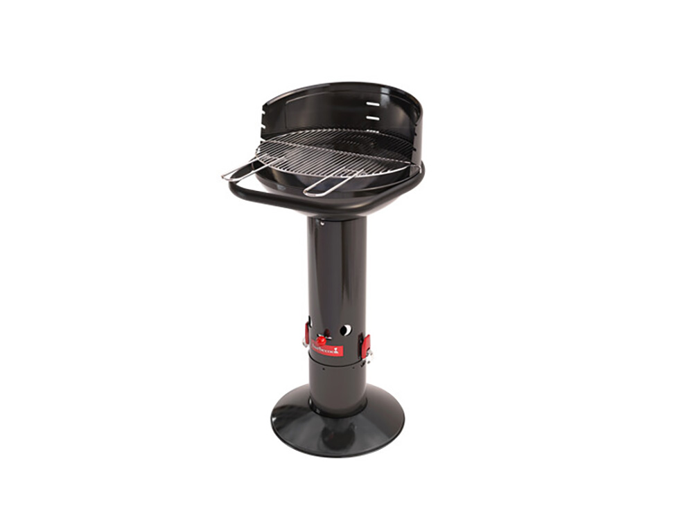 Het verchroomd rooster is verstelbaar in drie posities. Deze uitvoering van Barbecook barbecue Loewy heeft een zwarte look en is gemaakt uit geëmailleerd staal.