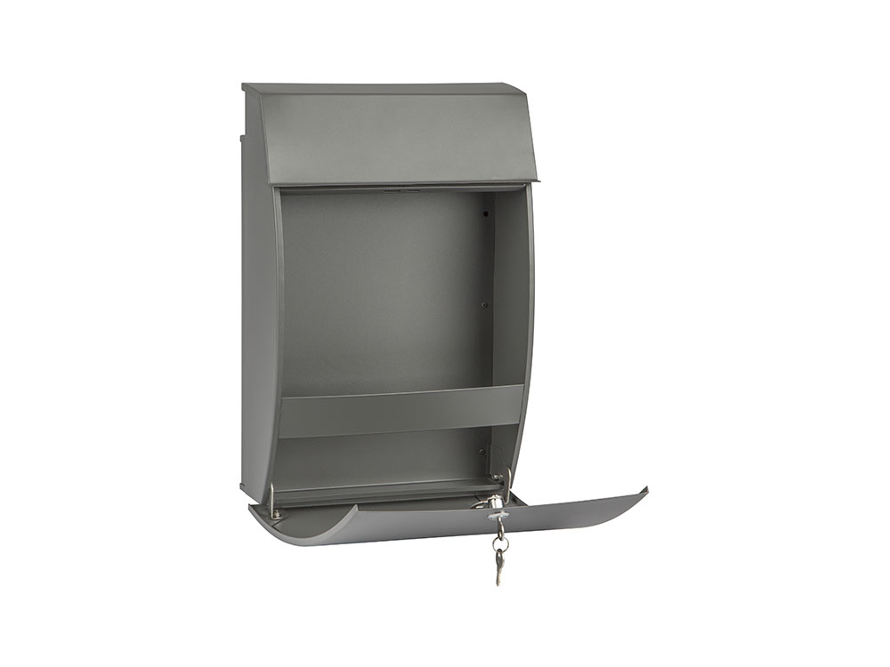 Deze brievenbus heeft een cilinderslot met twee sleutels en wordt geleverd inclusief muurbevestiging.