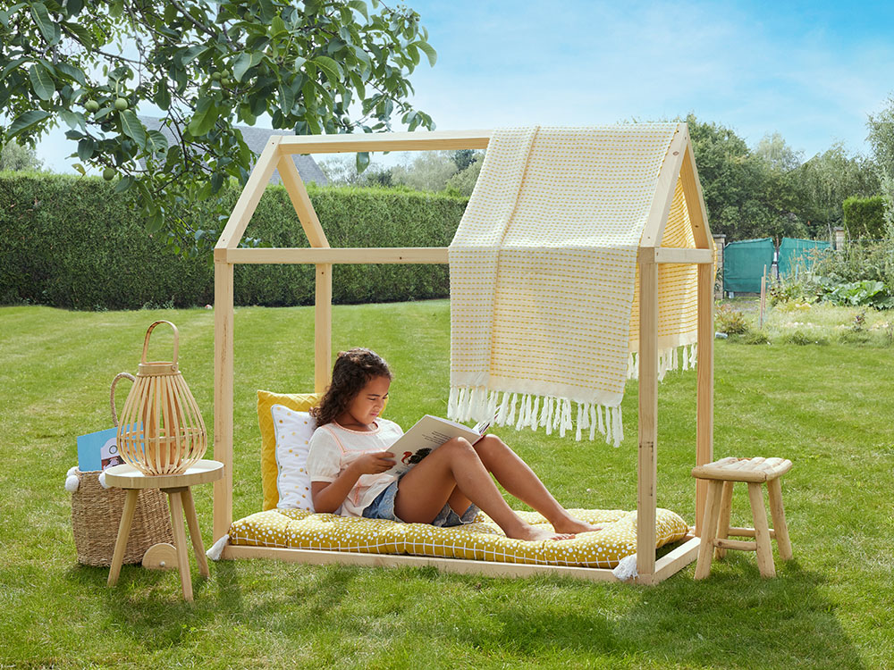 Het speelhuis Discover bevordert de vrije motoriek en autonomie van kinderen tijdens het spelen. Doordat het speelhuis geen muren of omheiningen heeft, biedt deze hut kinderen de perfecte structuur om hun eigen wereld te creëren en eindeloos aan te passen. Dit houten speelhuis past zich aan aan de behoeften en verbeelding van je kind en zal ongetwijfeld zijn favoriete ruimte worden.