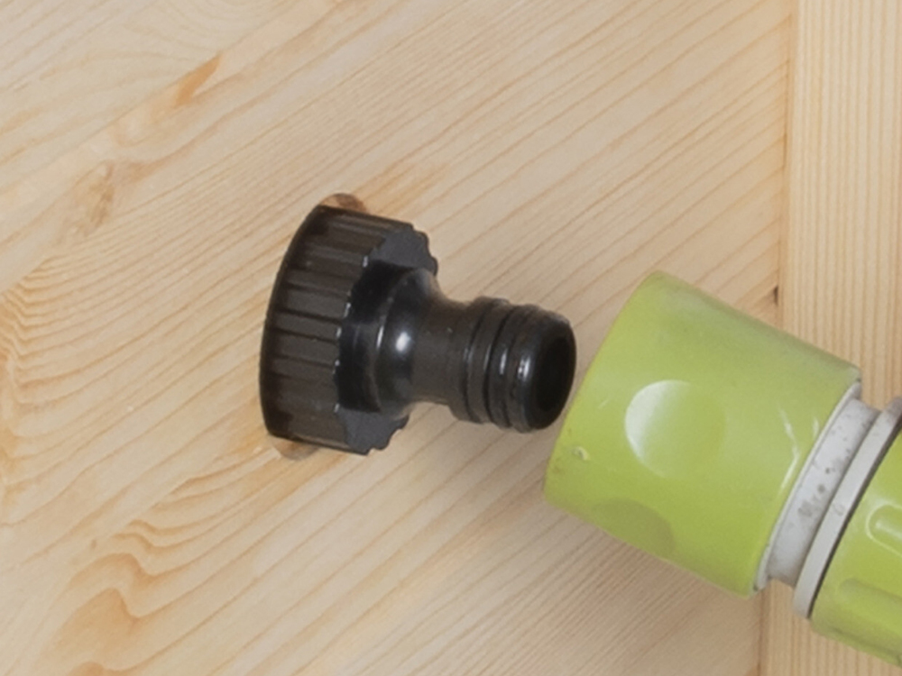 Het kraantje kan via de achterwand aangesloten worden op de tuinslang.