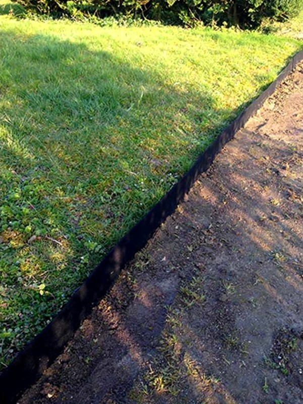 Voor een nette omranding tussen gazon, terras en borders kan je gebruik maken van deze flexibele borderrand.