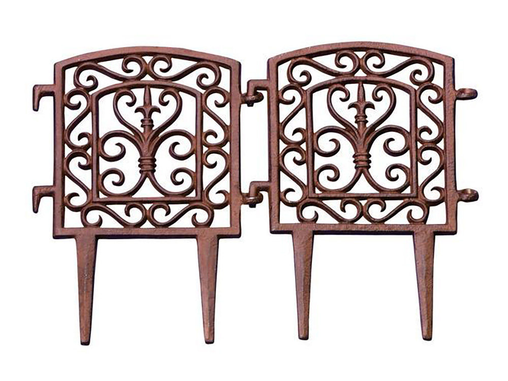 Een elegant gietijzeren perkhekje van Esschert design om de verschillende secties van je tuin van elkaar te scheiden. Perfect voor het markeren van bloembedden, een kruidenhoekje of als afscheiding tussen het grasveld en een pad.