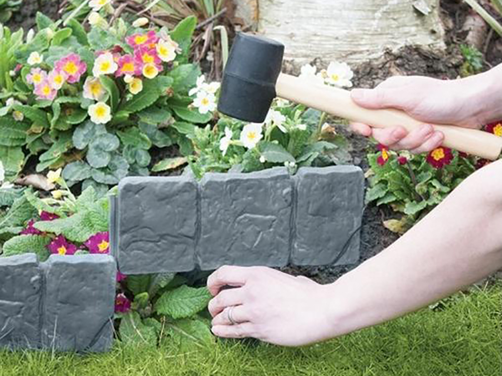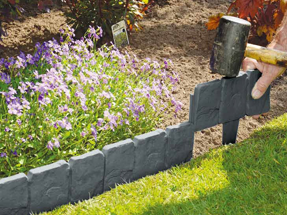 De verschillende onderdelen van deze tuinafboording zijn gemakkelijk in elkaar te schuiven. Het materiaal is bovendien weersbestendig en goed bestand tegen de grastrimmer.