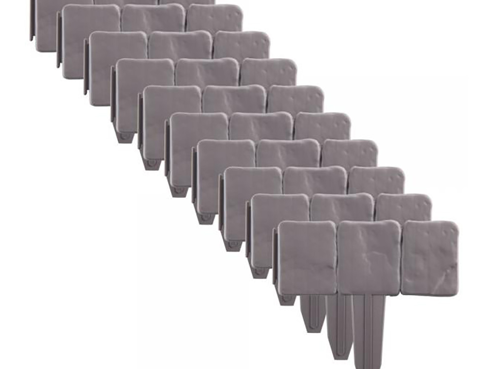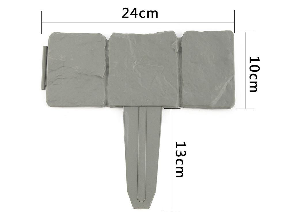 Mooie tuinfboording in kunststof. Deze borderrand heeft een steengrijze kleur en heeft tevens de looks van een echte boordsteen. Ideaal voor het bekomen van een mooi afgelijnd gazon en bloemperken. Dankzij deze gazonboord hoef je de rand van het grasveld niet steeds opnieuw af te steken omdat het gras niet meer in de border kan groeien.