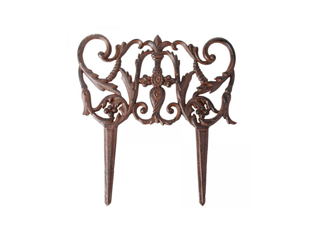 Een charmant rustiek gietijzeren perkhekje van Esschert design, verfraaid met klassieke Victoriaanse decoratie. De sierlijke krullende bladeren en bloemen geven een prachtige en decoratieve touch aan elke tuin.