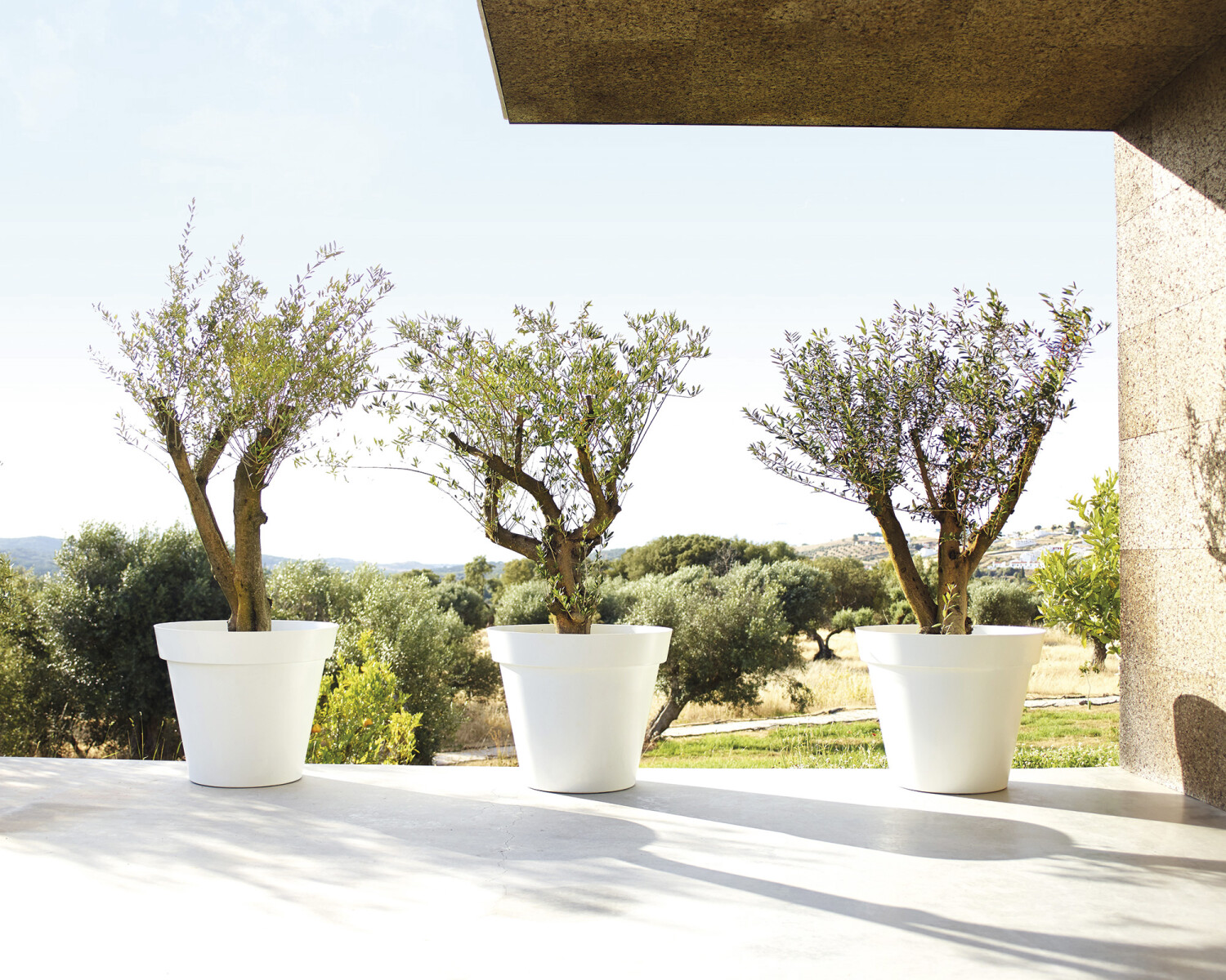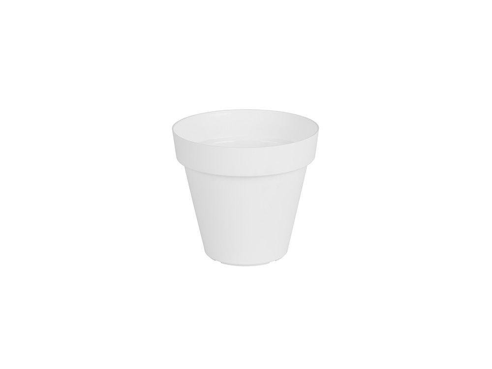 Witte bloempot Capri, afgewerkt in een stijlvol en strak design. Deze ronde bloempot van Artevasi is vervaardigd uit een stevige UV-bestendige kunststof, waardoor hij perfect binnen als buiten kan worden gebruikt.