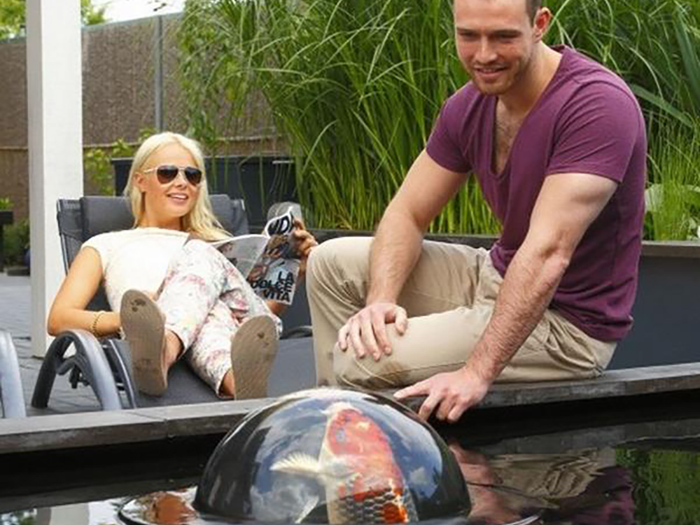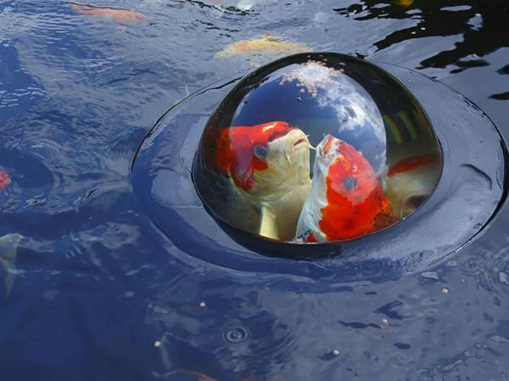 De vissen zullen in de doorkijkbol die als een koepel op het water drijft, vaak een kijkje komen nemen en dat levert prachtige beelden op. Het van dichtbij observeren van de vissen is ook ideaal voor het vroegtijdig ontdekken van zieke vissen.
