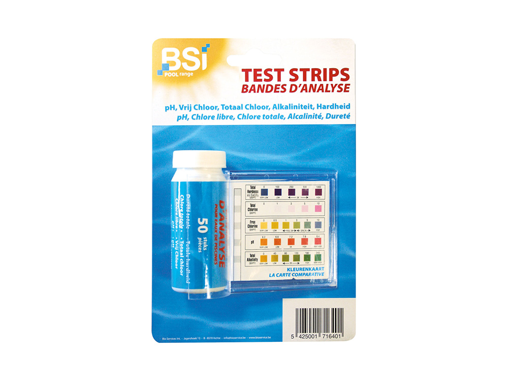 Met deze BSI test strips kan je in een handomdraai de kwaliteit van het zwembadwater controleren. Je kan de PH-waarde bepalen en de hoeveelheid chloor maar ook de alkaliniteit en de hardheid van het water.