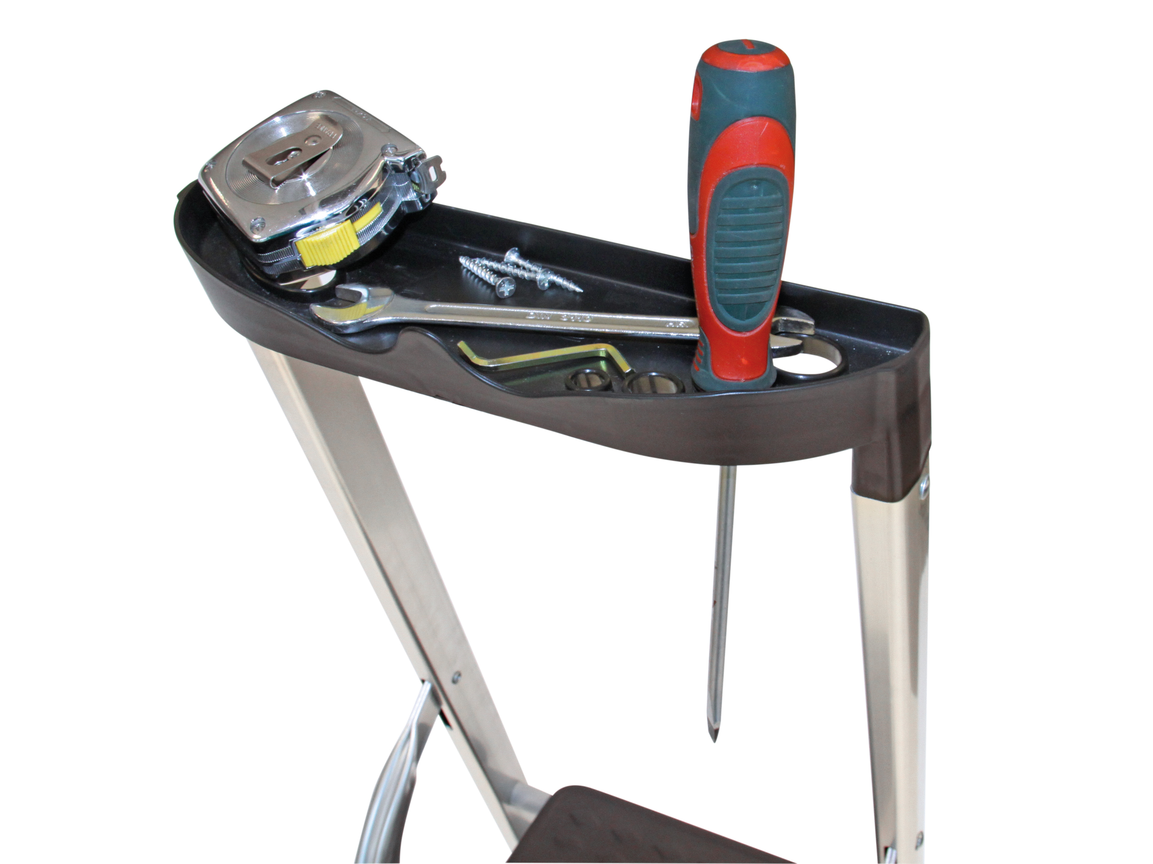 Om de grip op de treden zo lang mogelijk hoog te houden, zijn de profielen behandeld met een vuilafstotende laag. Hierdoor kan je veilig en met vertrouwen werken, zelfs onder vochtige omstandigheden. De trapladder Power Step aluminium is ook voorzien van een handige gereedschapshouder, die zich bovenaan de ladder bevindt. Zo heb je altijd jouw benodigde gereedschap binnen handbereik.
