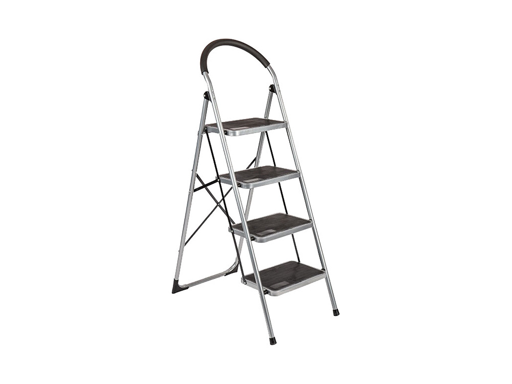 Trapladder Staal King 4 brede treden - zilver/zwart