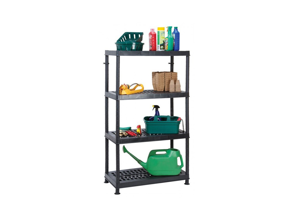 Heavy duty opbergrek voor in de tuinkas, het tuinhuis of de garage. Heavy duty betekent dat elk legboord tot 50 kg belast kan worden. De legboorden zijn geperforeerd en dus ook geventileerd waardoor ze een meerwaarde hebben in de tuinkas.