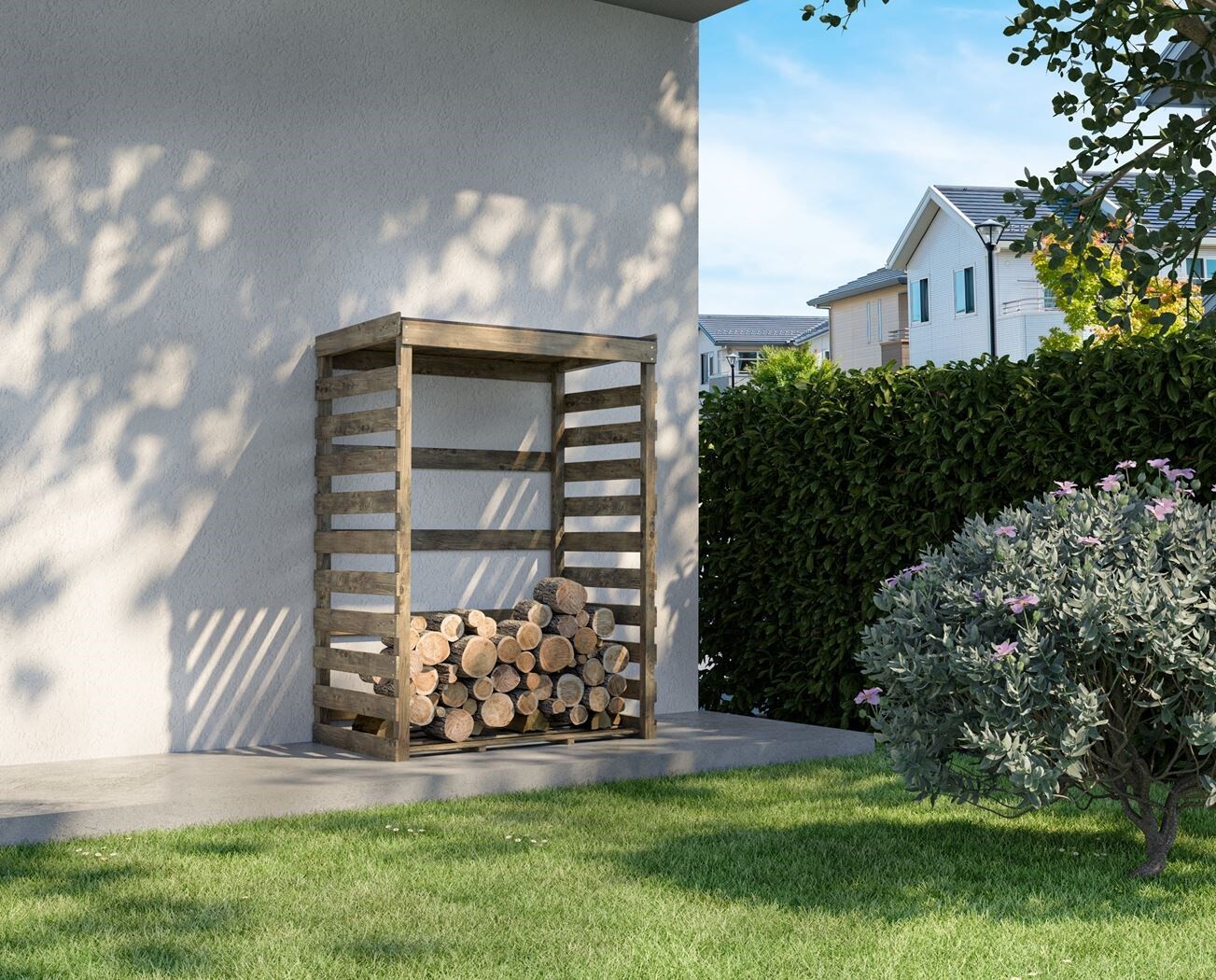 De Columbus houtberging is ontworpen om meerdere kubieke meter houtblokken op te slaan, beschermd tegen de elementen. De houtopslag van Forest-Style is gemaakt uit geïmpregneerde Noorse den afkomstig uit duurzaam beheerde bossen. Deze opslagruimte maakt het efficiënt organiseren van houtblokken van verschillende maten mogelijk.