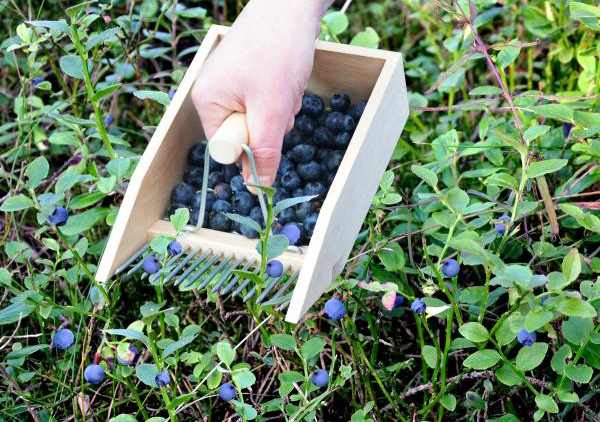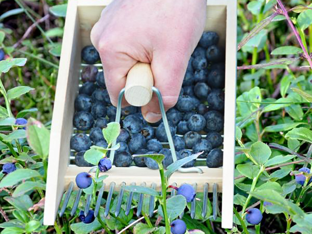 Deze handige plukker, met een houten handvat, wordt al sinds jaar en dag gebruikt. Een ervaren plukker kon er wel tot 350 kg bosbessen per dag mee plukken.