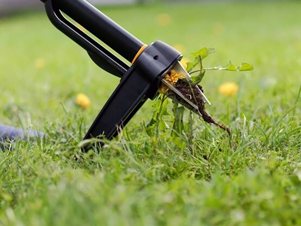 De grijparmen uit roestvrij staal dringen diep in de bodem, grijpen de wortel van het onkruid rondom beet en halen het onkruid uit de grond.