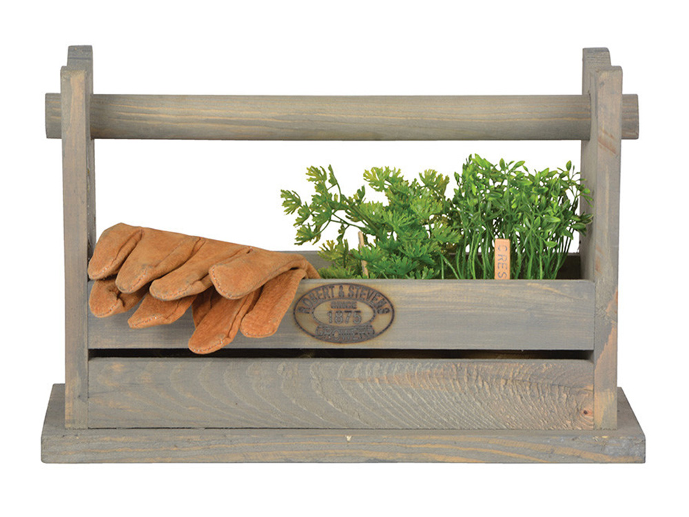 Deze rustieke gereedschapskist doet dubbel dienst: draai hem om en je hebt een handig zitbankje tijdens het werk. Dankzij de handgreep neem je de kist gemakkelijk mee, en het ruime vak biedt volop ruimte voor bloempotten en tuingereedschap.