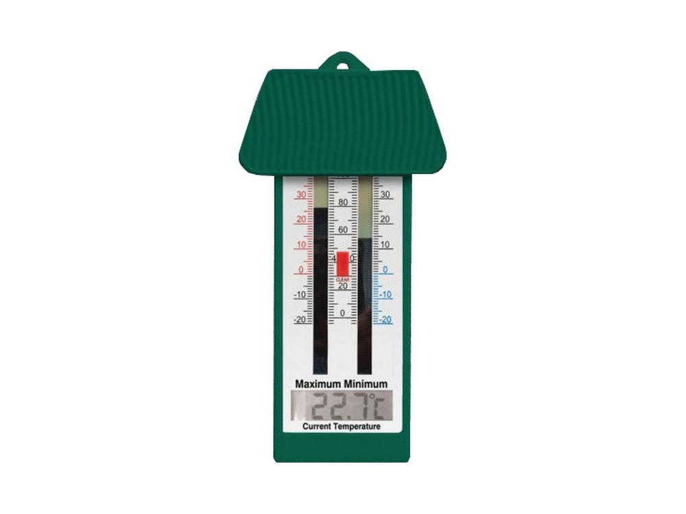 Digitale min/max muurthermometer. Digitale thermometer met de mogelijkheid om in graden celcius of graden fahrenheit te meten. De thermometer geeft de minimum, de maximum en de huidige temperatuur weer.