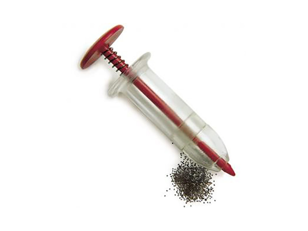 Een zeer nuttig en eenvoudig instrument voor het zaaien van kleine zaden. Dit precisie-zaaitoestel kan worden gebruikt om in de moestuin direct in voren te zaaien of voor het zaaien van zaden in bakjes, potjes,... binnenshuis.