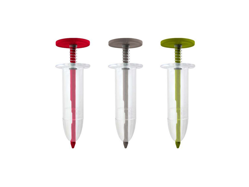 - Hoe verder de knop ingeduwd, hoe meer zaden vrijkomen