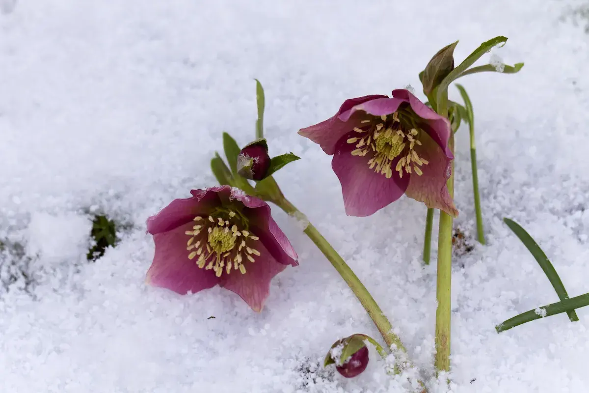 - De Helleborus heeft een specifieke manier om haar bloemen te beschermen tegen vorst. Ze pompt namelijk al het vocht uit de bloemen en slaat deze tijdelijk op in de bladeren en wortels. De bloemen hangen dan wel wat slap en treurig, maar bevriezen niet. Na de vorst pompt de plant het vocht terug naar de bloemen en staan deze er weer stralend bij.