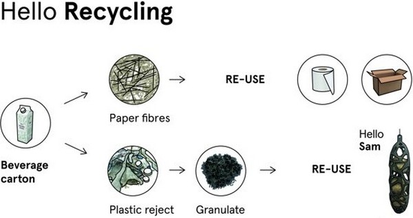 De Hello Sam mezenbolhouder is gemaakt uit 100% gerecycleerd materiaal afkomstig uit tetrabriks. Door deze mezenbolhouder in jouw tuin te hangen help je dus niet alleen de tuinvogels maar draag je ook jouw ecologisch steentje bij.