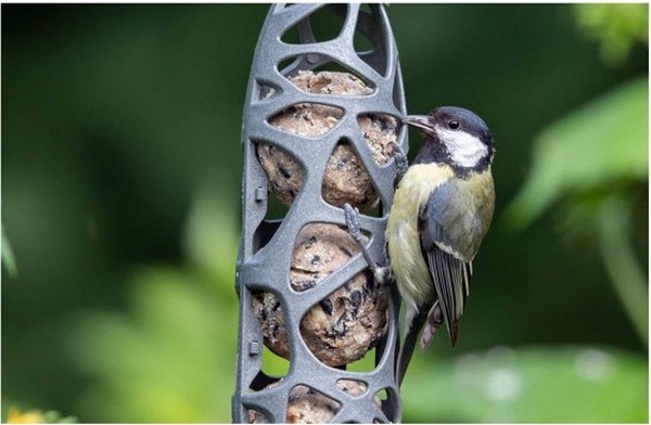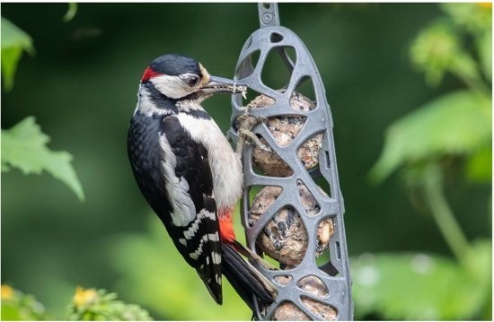 Dit leuke ontwerp heeft een inhoud van circa 3 mezenbollen en klikt volledig open zodat je de houder gemakkelijk kan reinigen. In het broedseizoen kan deze leuke korf gebruikt worden voor het aanbieden van nestmateriaal.