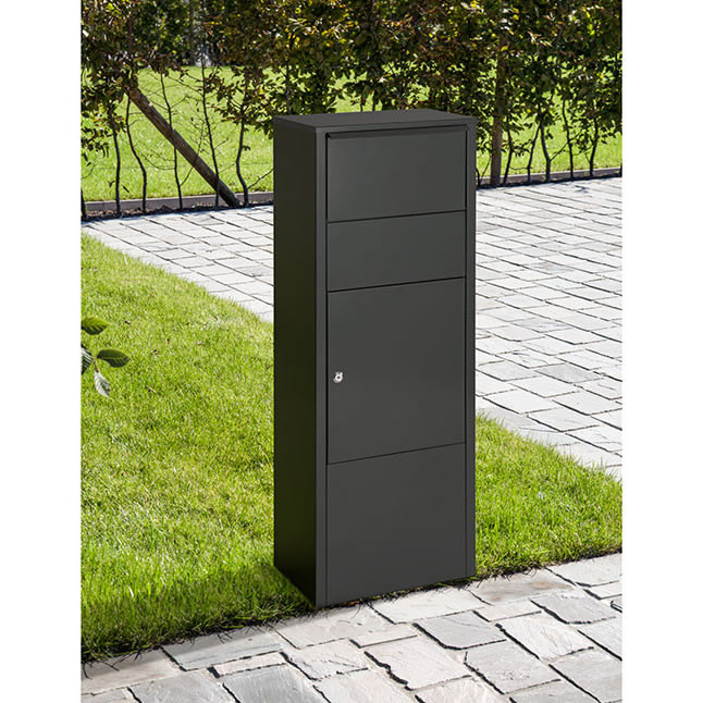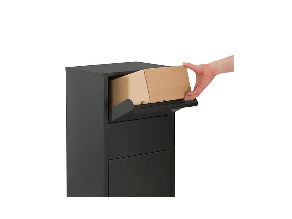 Hannover is een handige staande pakketbrievenbus met een grote opening (ca. 19 cm x 34 cm) met terugslagklep en dempsluiting.