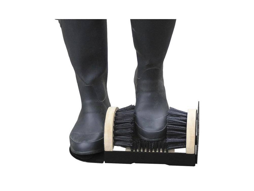 Laarzenschraper met borstels. Even de laarzen reinigen of jouw schoenen afkuisen voordat je de garage binnen gaat, dat lukt prima met deze borstelmat en het bespaart veel kuiswerk in huis of in de garage. Het houten kader is bedekt met borstels uit harde kunststof die jouw schoeisel aan de onderkant en zijkant afkuisen. Het vuil van de laarzen valt tussen de borstels door en zo kan de volgende bezoeker ook meteen zijn of haar schoenen reinigen.
