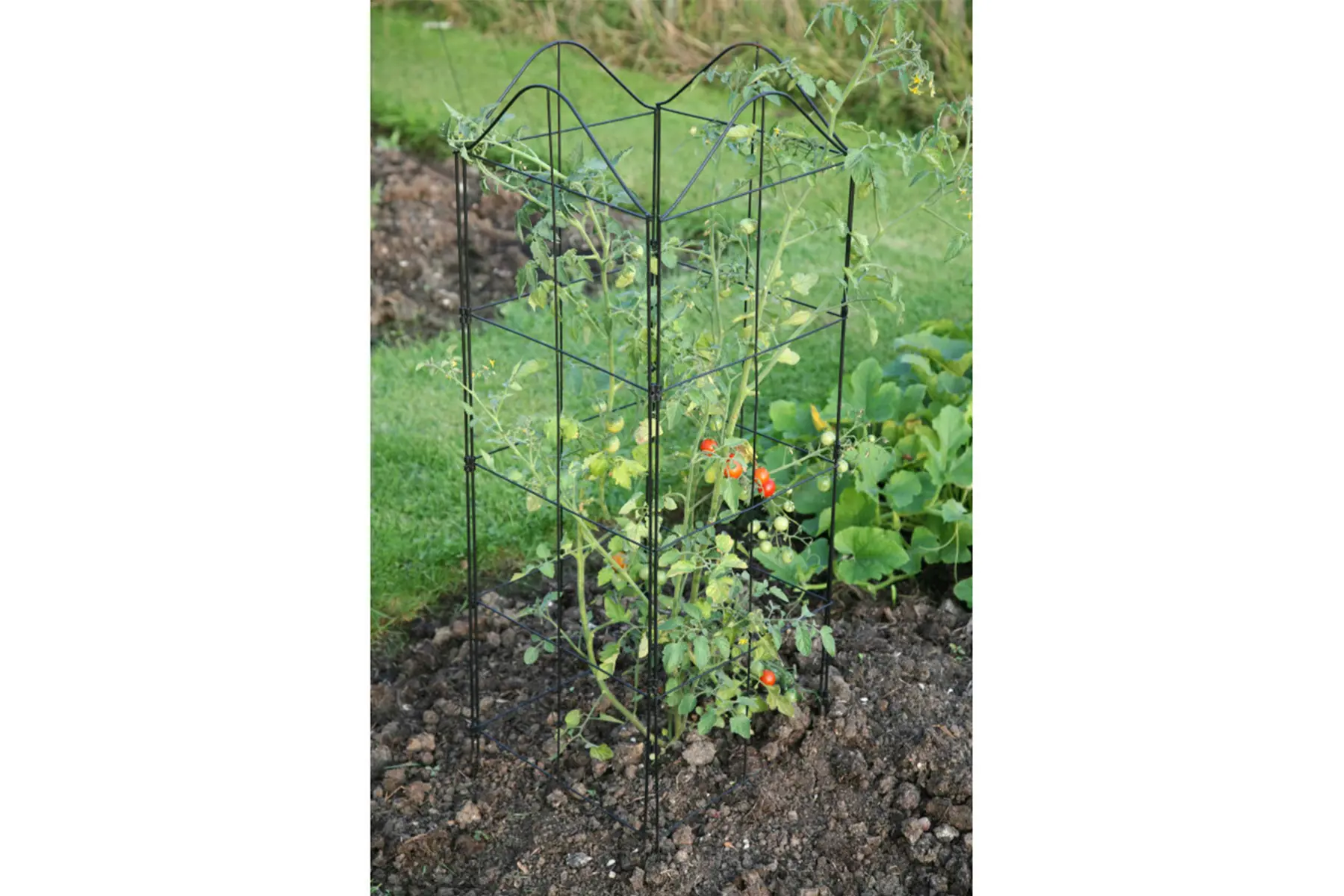 Deze handige klimplantsteunrekken voorkomen dat tomatenplanten in elkaar zakken onder het gewicht van de vruchten die ze vormen. De vier panelen kunnen worden gebruikt in een vierkant of apart.