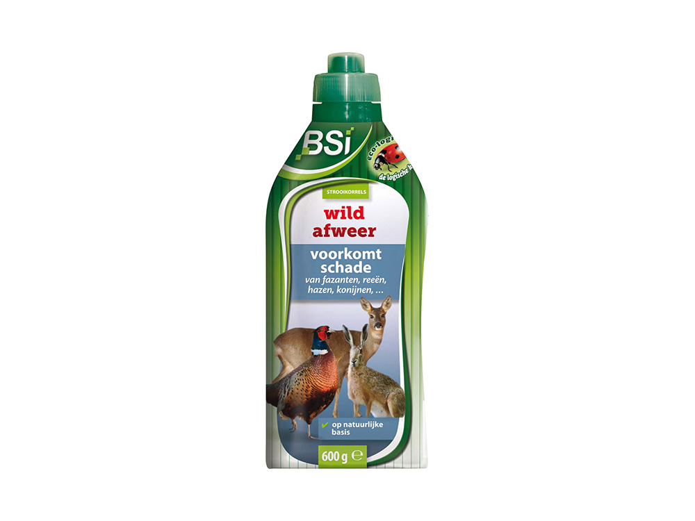 Strooi BSI Wild afweer rond de zone die je wenst vrij te houden van overlast door wild. Vorm een ononderbroken strook rond deze zone en je zal geen last meer hebben van wilde dieren! Wild afweer is samengesteld uit 100 % natuurlijke producten op basis van plantenmateriaal met krachtige, specifieke, afwerende en langwerkende geuren.