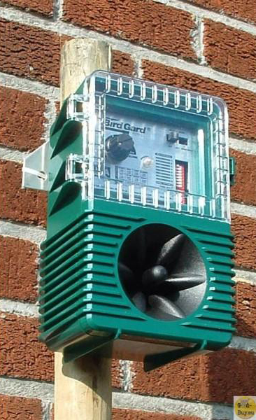 Deze professionele vogelverjager met een bereik tot 6000 m² maakt 8 verschillende geluiden van roofvogels en noodkreten van de specifiek te verjagen vogels. Instelbaar in volume, lengte, soort vogel, tijdklok, willekeurig tijdstip (dag, nacht, 24 uur). De opgenomen vogelgeluiden zijn paniekroepen van de desbetreffende vogelsoort. Wanneer een vogel van dezelfde soort die noodkreten hoort, zal hij vluchten omdat hij denkt dat hij in gevaar is. Andere opgenomen geluiden zijn die van roofvogels, waardoor bepaalde vogelsoorten ook zullen vluchten omdat ze gevaar vermoeden.