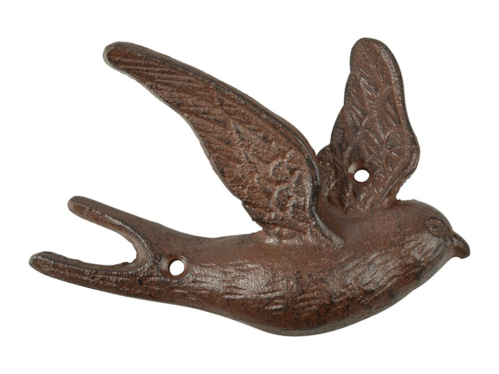 De vogel is gemaakt uit gietijzer en is voorzien van twee bevestigingsgaten waarmee je de haak stevig aan de muur kan bevestigen.