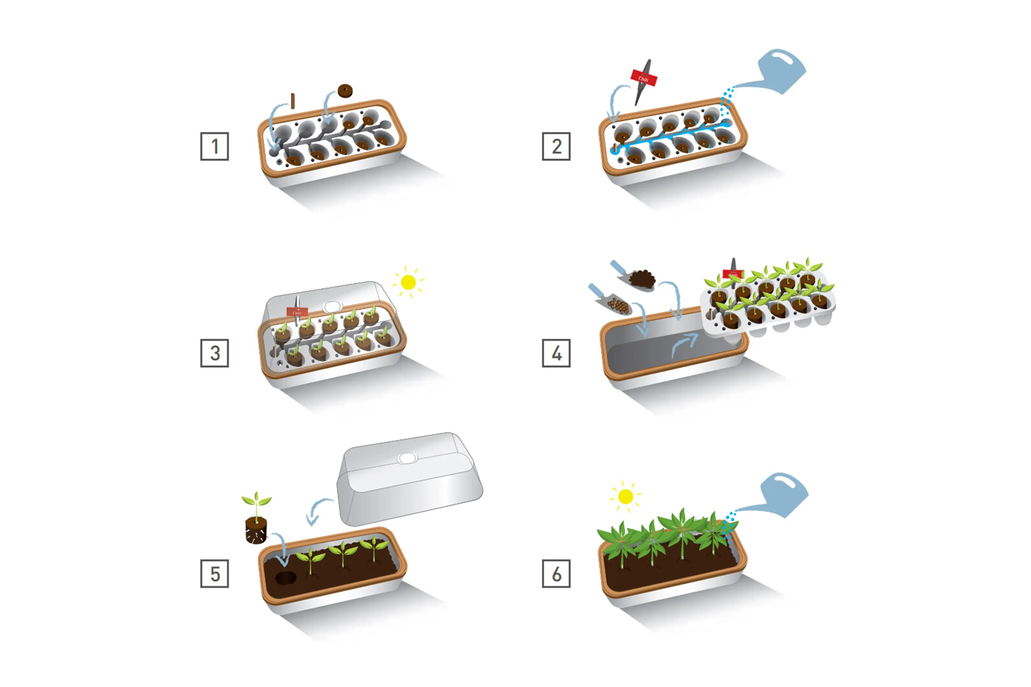 Eens de zaailingen groot genoeg zijn, kan de kweekkas in een handomdraai omgetoverd worden tot een plantbak door de tray er uit te nemen. Ook hier werd gezorgd voor een optimale afwatering van het overtollige gietwater.