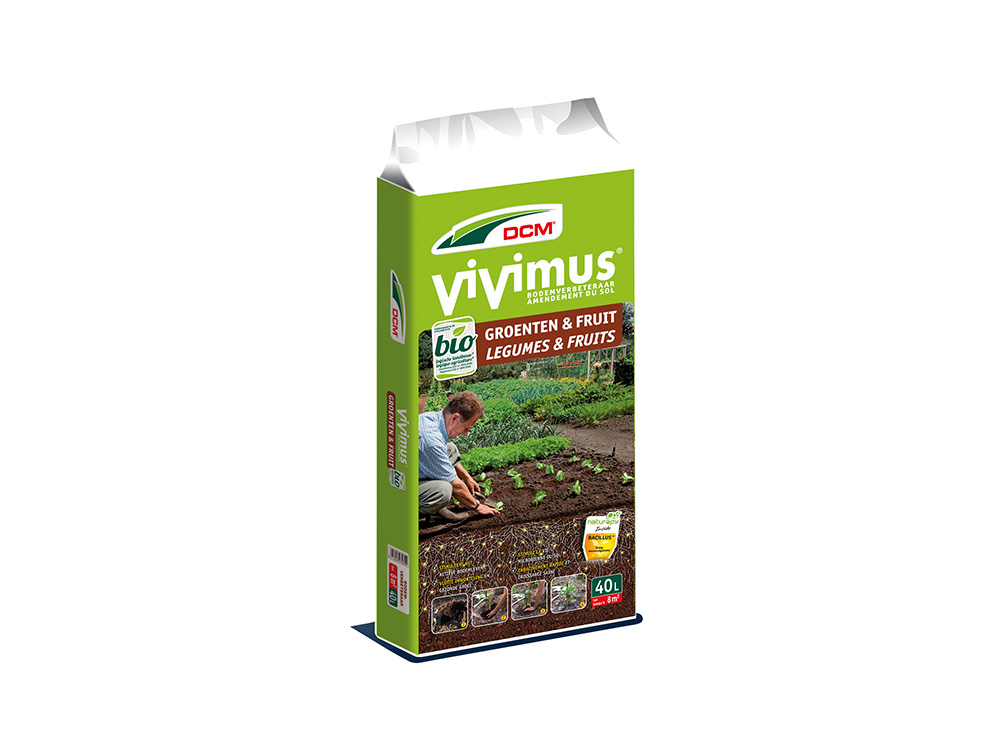 DCM Vivimus® Groenten & Fruit is een organisch bodemverbeterend middel geschikt voor gebruik in biologische tuinen en volledig samengesteld uit 100% natuurlijke producten.