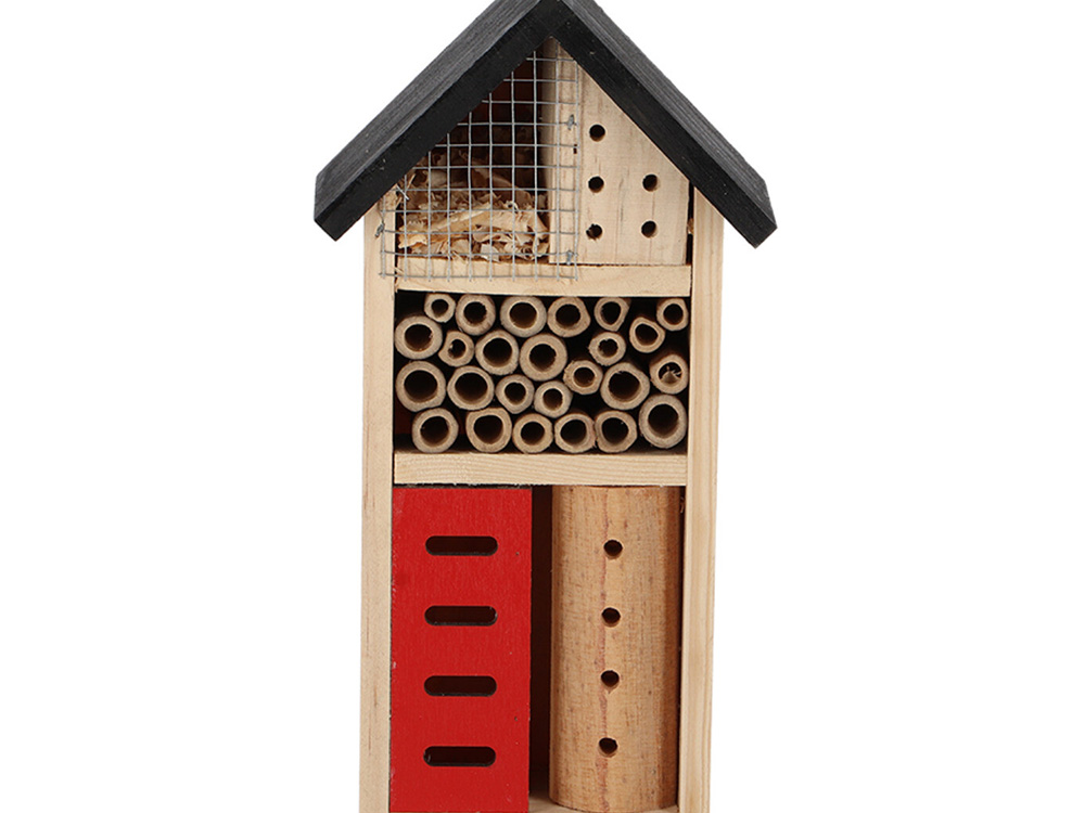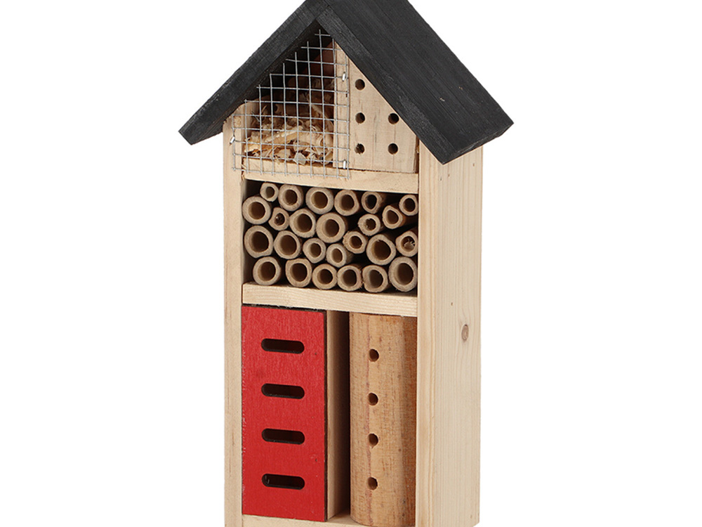 Insecten spelen een cruciale rol in de tuin, waaronder bestuiving en natuurlijke ongediertebestrijding. Dit basis insectenhotel van Esschert Design biedt solitaire bijen, lieveheersbeestjes en andere nuttige insecten een geschikte nest- en overwinterinsglocatie.