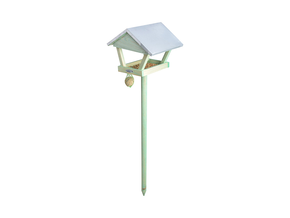 Vul deze voedertafel overvloedig met verschillende soorten vogelvoer en zie hoe talrijke tuinvogels komen smullen van de lekkernijen. Een handig haakje onderaan de voedertafel maakt het mogelijk om mezenbollen, gevulde kokosnoten of pindaslingers op te hangen.