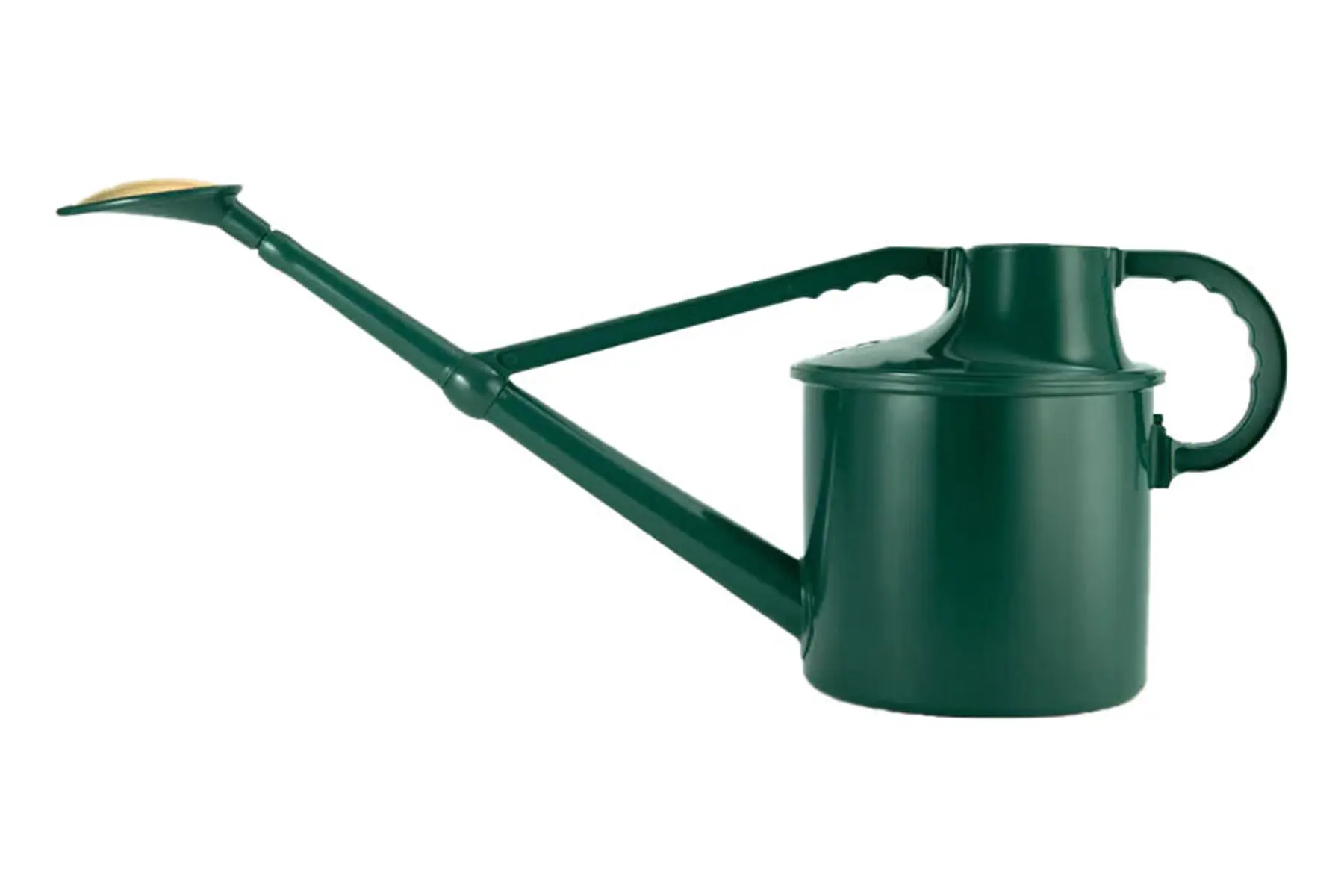 De groene kunststof gieter wordt geleverd met een fijne koperen broes en een handige naar beneden gerichte gietkop om rechtstreeks potten of schaaltjes te bewateren. De verhoogde vulopening zorgt ervoor dat het water er niet uit kan klotsen. De draagbeugel zit ook niet boven de vulopening zodat het vullen onder de kraan een heel stuk makkelijker gaat.