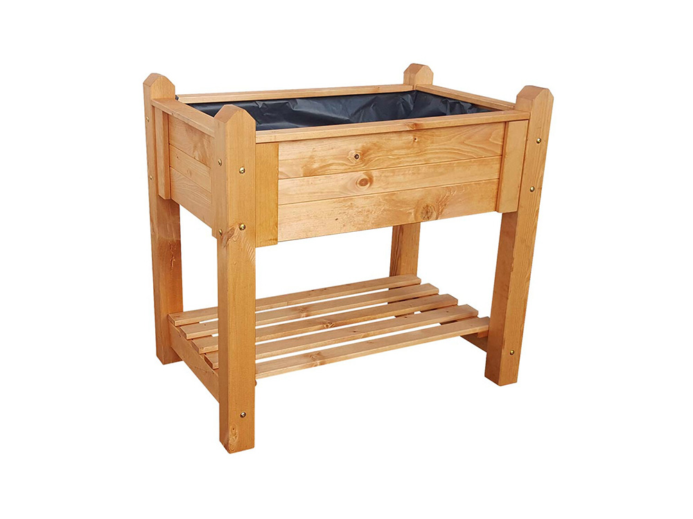 De bak is gemaakt uit massief geïmpregneerd hout en heeft een honingbruine kleur. Een geschikte plantfolie wordt meegeleverd.