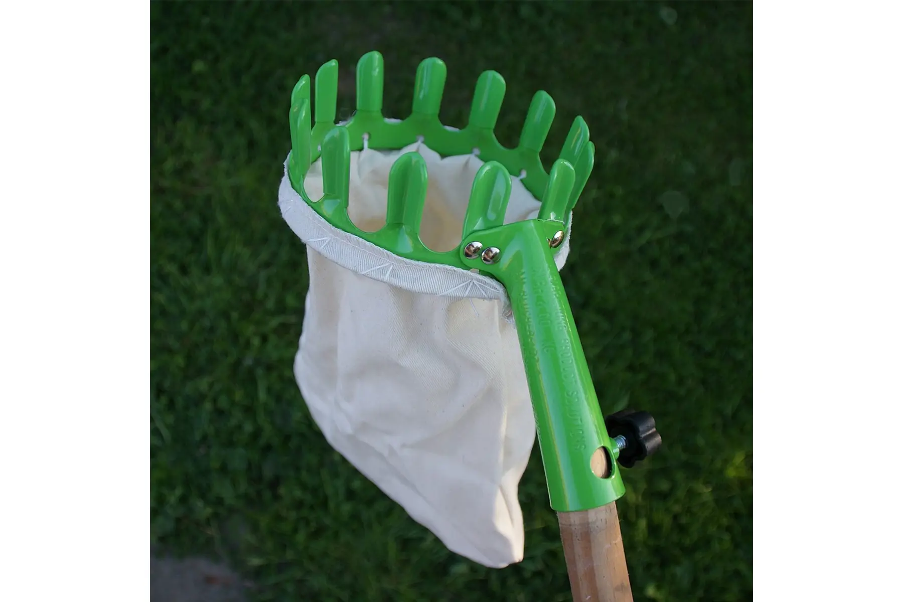 De plukhulp is een opvangnet met afgeronde plukpinnen, een onmisbaar tuingereedschap om fruit vanop de grond te oogsten. Met deze fruitplukker geraak je tot bij de appel of peer in de boom, steek het steeltje tussen 2 plukpinnen en trek zachtjes totdat de vrucht lost van de tak en in het opvangnet valt. Zo oogst je fruit zonder de vruchten te beschadigen en zonder ladder.