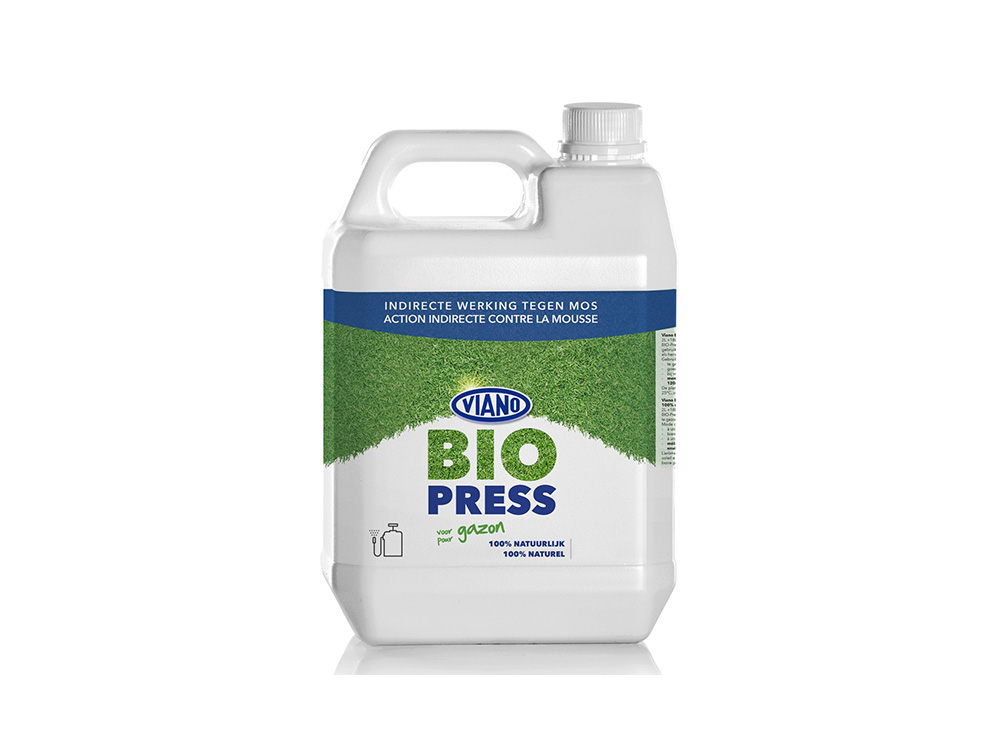 Viano Bio-Press heeft een verbazingwekkende snelle indirecte werking tegen mos. Reeds 24 uur na de behandeling sterft het mos af en kan men het gazon reeds verticuteren.