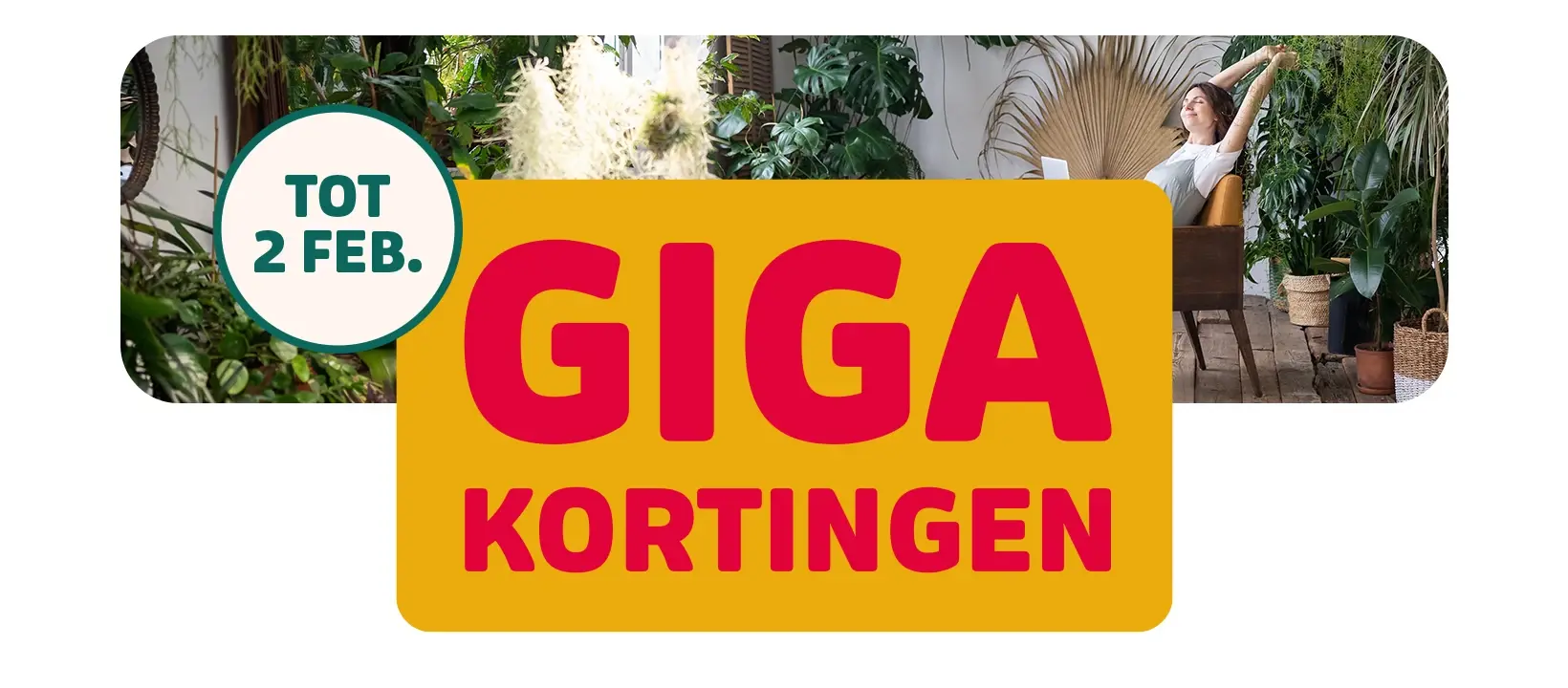 Tijdens onze Giga Groene Weken denken we groots! Tot en met 2 februari scoor je onze grote, groene blikvangers aan giga kortingen. Perfect om je tuin én je interieur in één klap om te toveren tot een weelderige, groene oase.