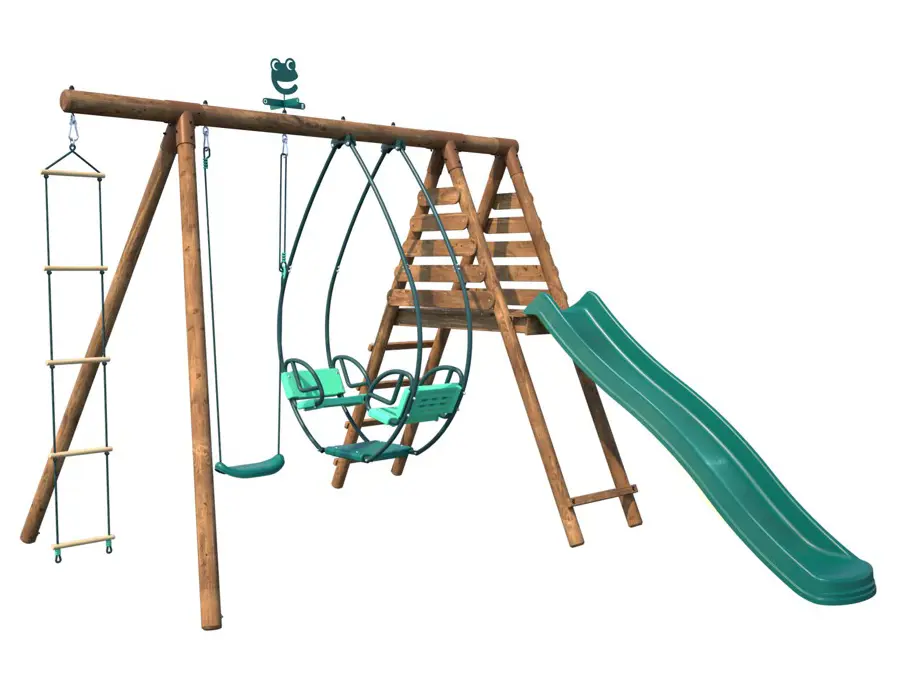 Soulet schommel Camélia in hout met glijbaan - 426 x 354 x 222 cm